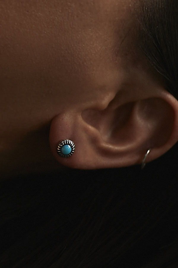 採用高質感 925 純銀,外層鍍銠處理、綠松石製成