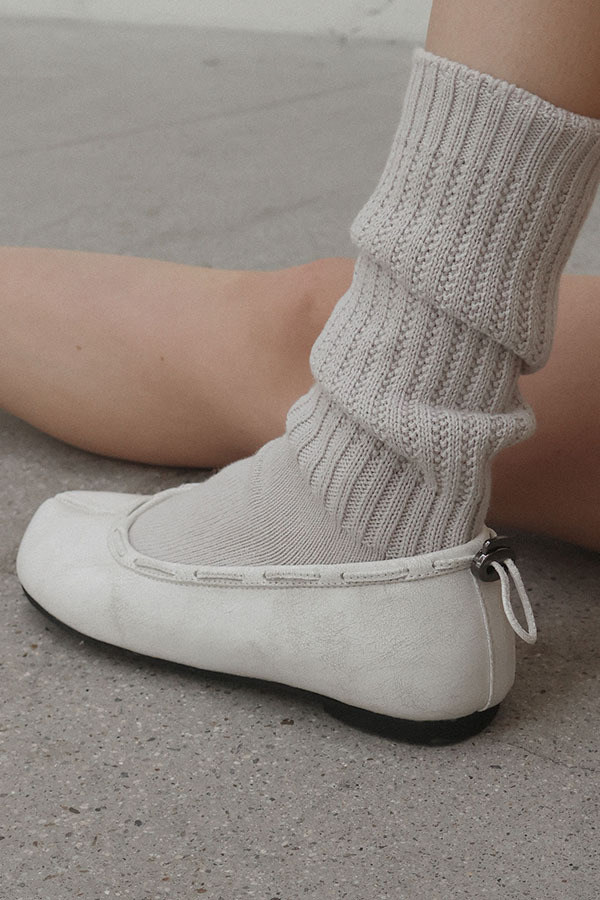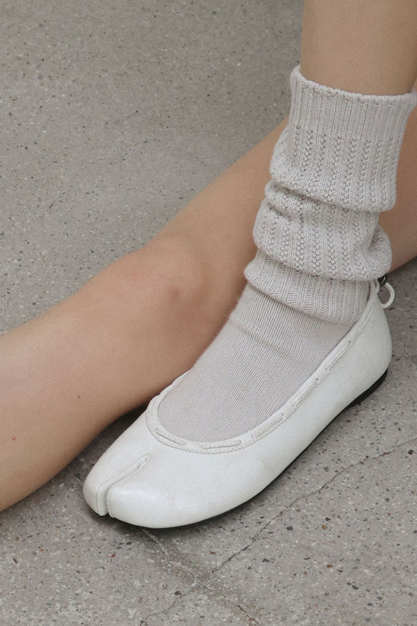 PAES - 分趾皮革平底鞋(復古白)