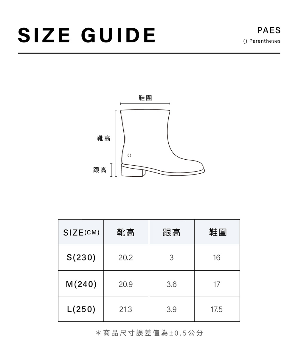 建議選購時,可參考選擇自己平常穿著的鞋子尺寸,並比平常大0.5~1公分的尺寸,確保穿著舒適。