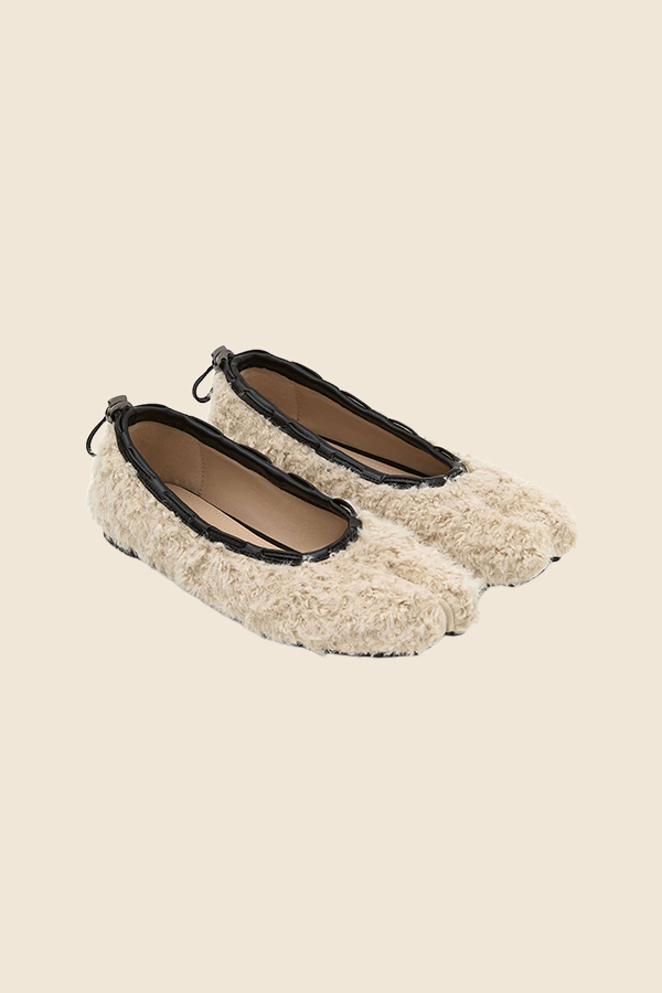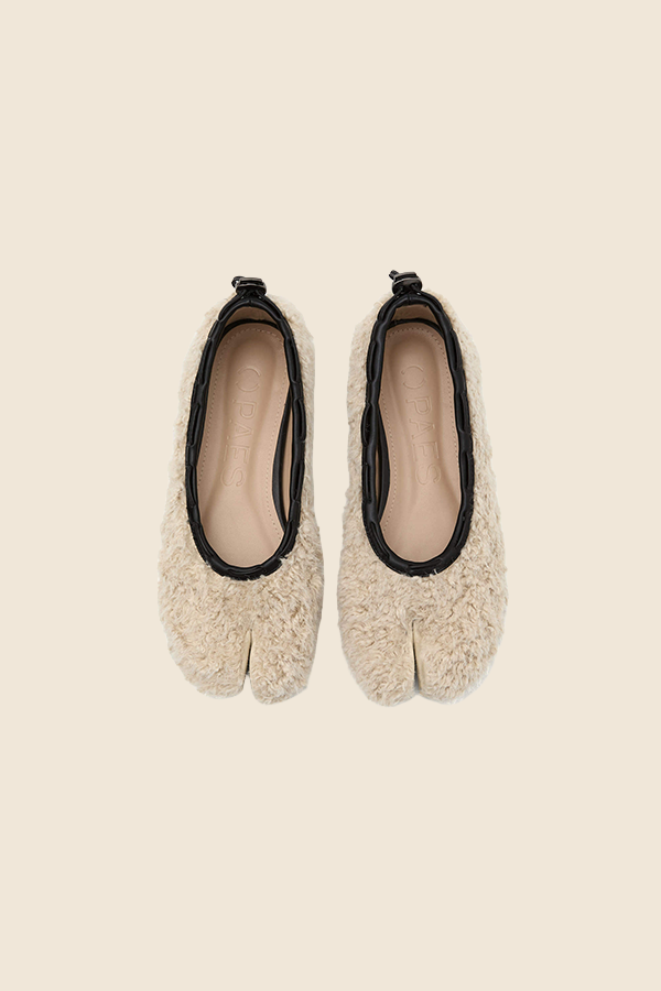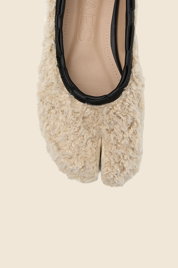 PAES - TEDDY絨毛平底鞋(米色)