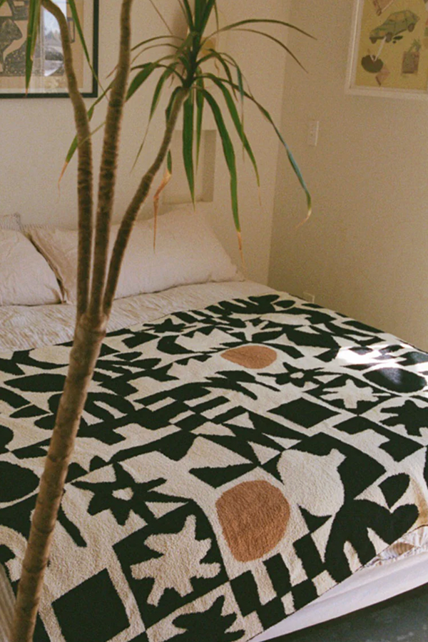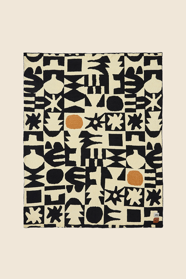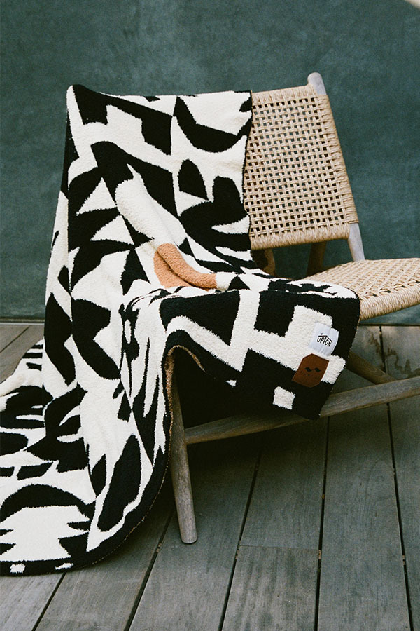 SLOWTIDE - UPTON 毛絨針織蓋毯(黑白拼接)