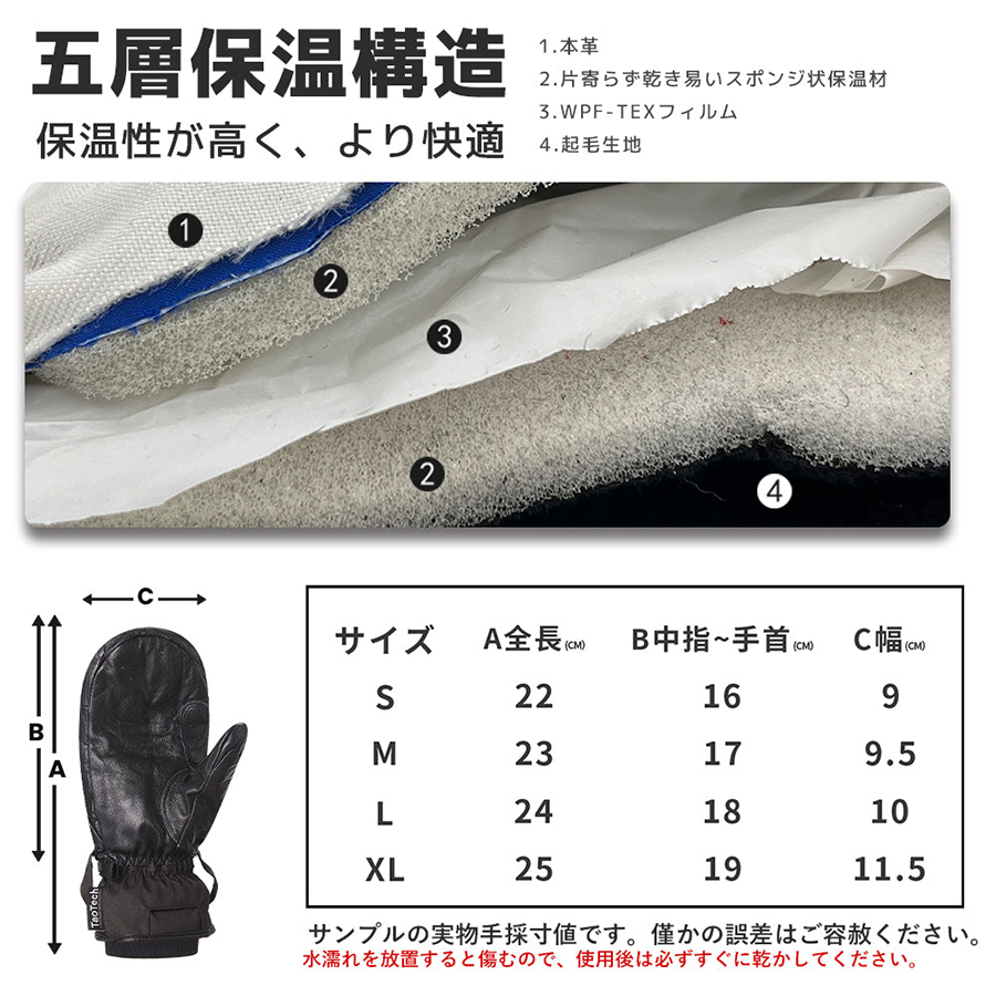 TAOTECH-全牛皮滑雪手套-豹紋
