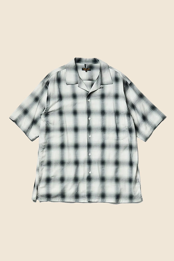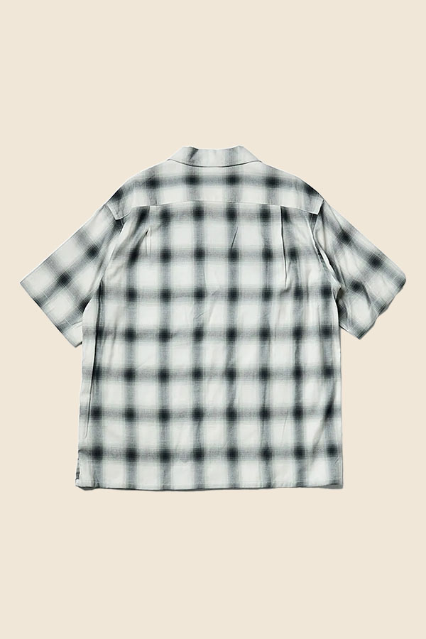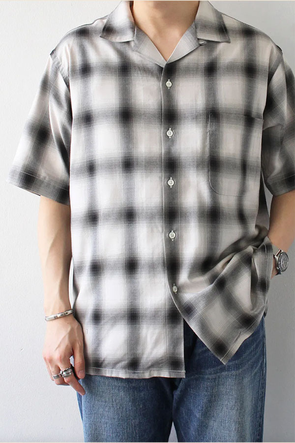 採用棉與人造絲漸層格紋布料製成,寬鬆剪裁