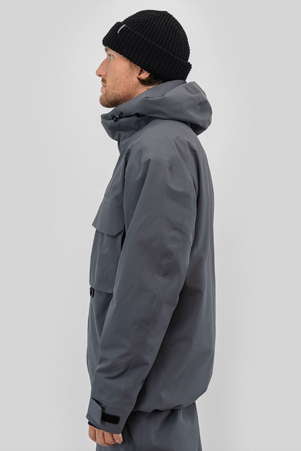 專為極端天氣條件設計三層技術外套結合寬版剪裁、大容量腹部口袋及多功能細節設計,兼具耐用性與實用性。