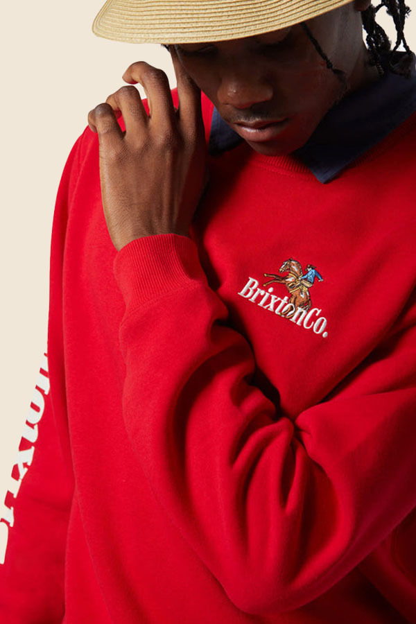 BRIXTON - 圓領刷毛上衣 -紅色