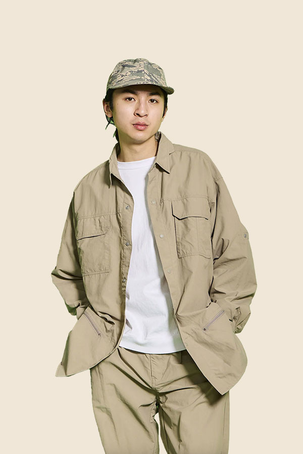 L/S BIG SHIRT 使用SUPPLEX NYLON製成的尼龍襯衫