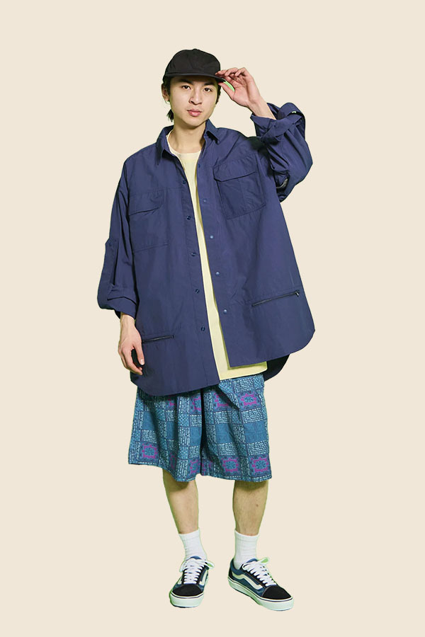 L/S BIG SHIRT 使用SUPPLEX NYLON製成的尼龍襯衫