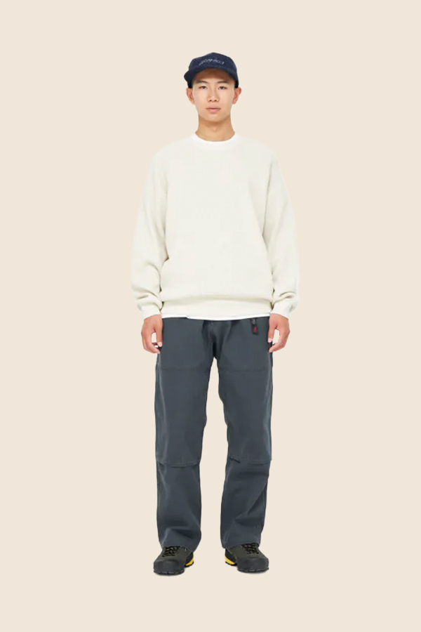 經典圓領長袖TEE,採用彈性蜂巢針織棉紗製成