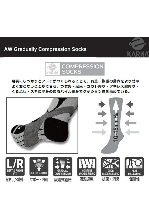 KARNA的壓縮襪並具有高吸濕速乾的性能,並且抗菌防臭。