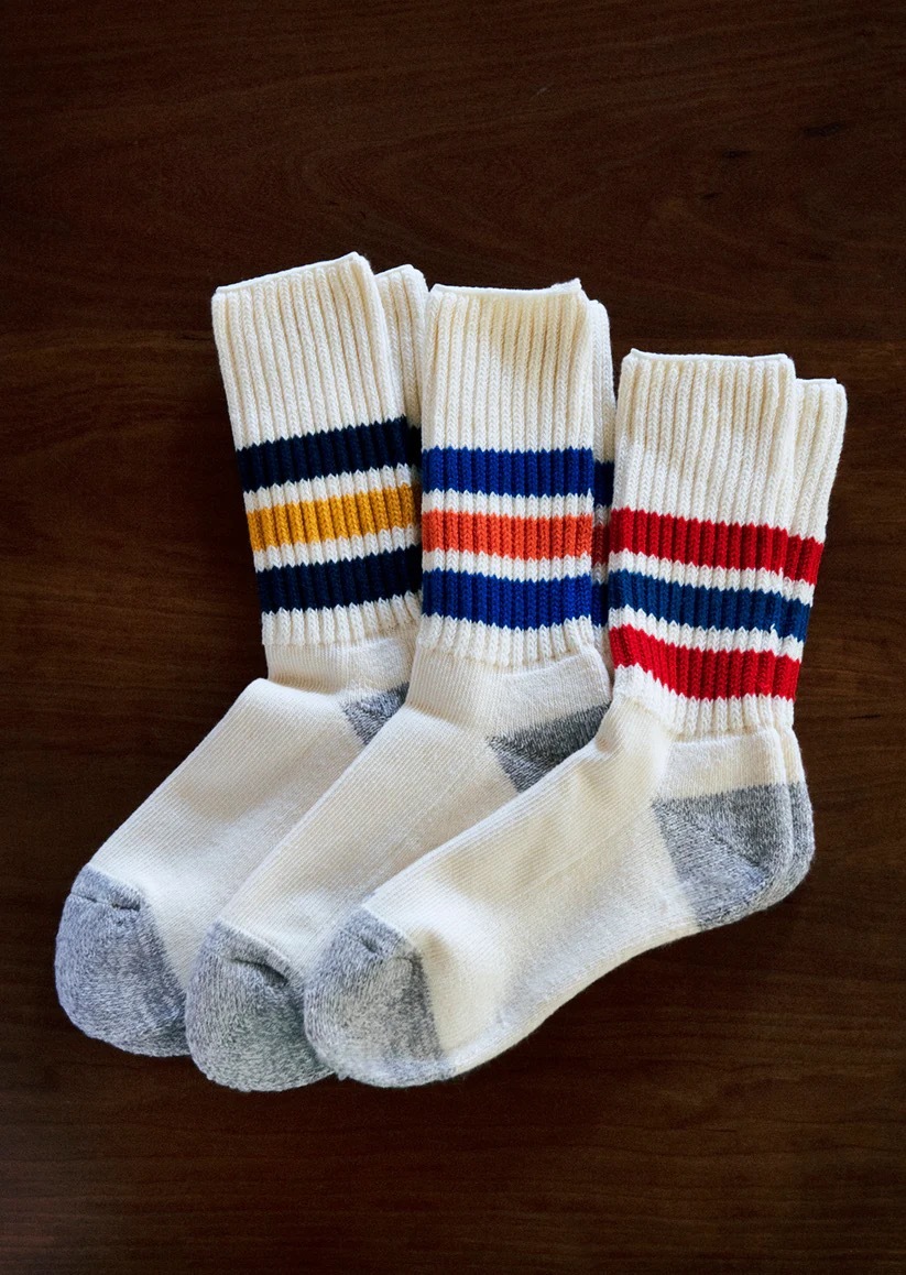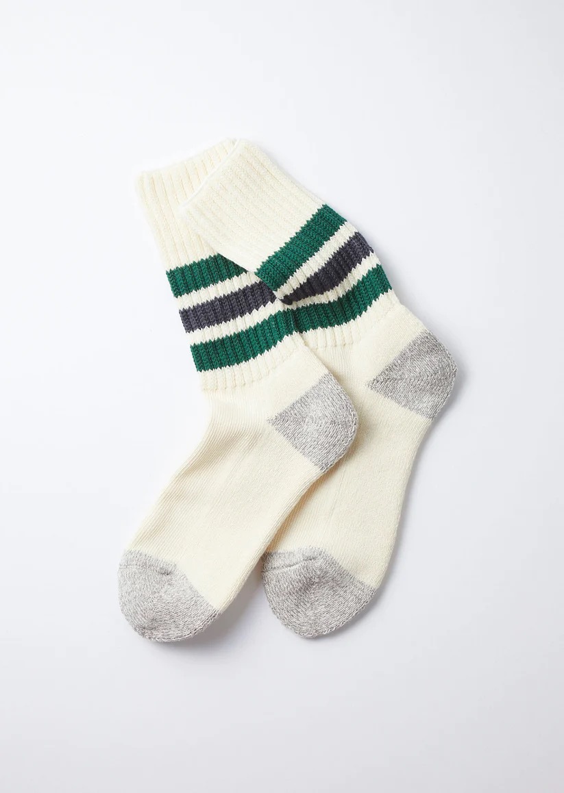 ROTOTO - R1255 COARSE RIBBED OLDSCHOOL CREW 襪 (綠藍條紋)