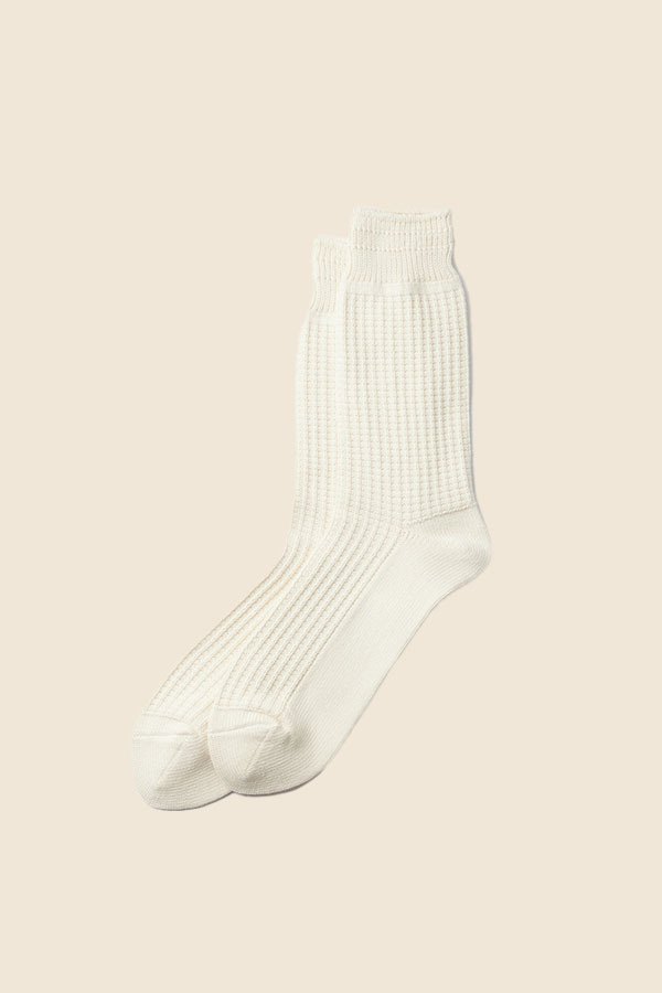 ROTOTO - R1110 COTTON 華夫格 襪 (純白)