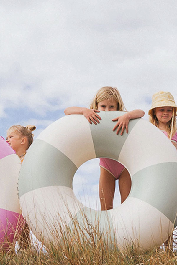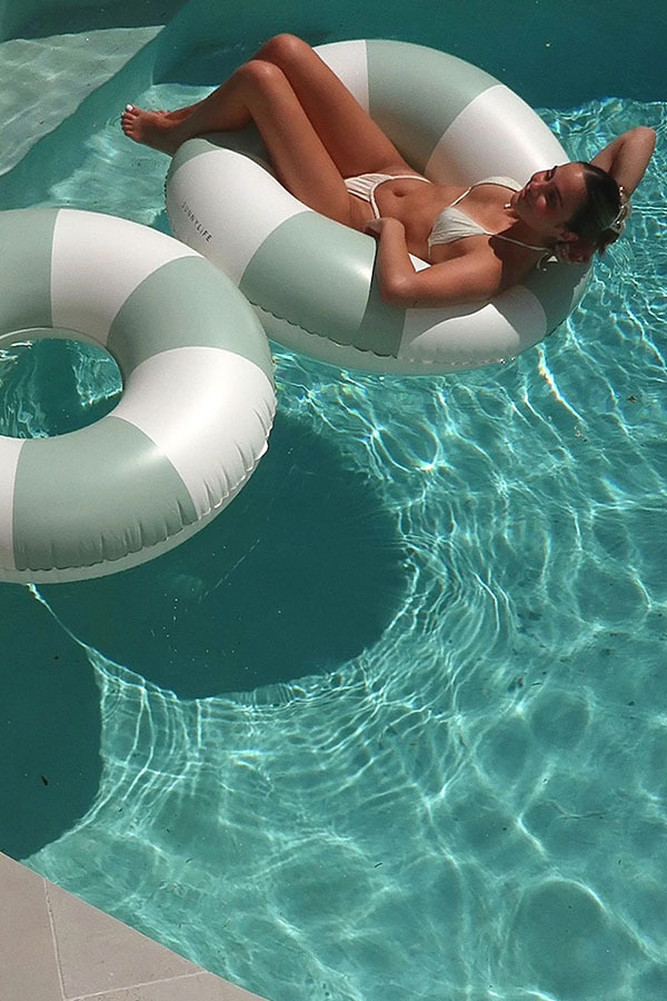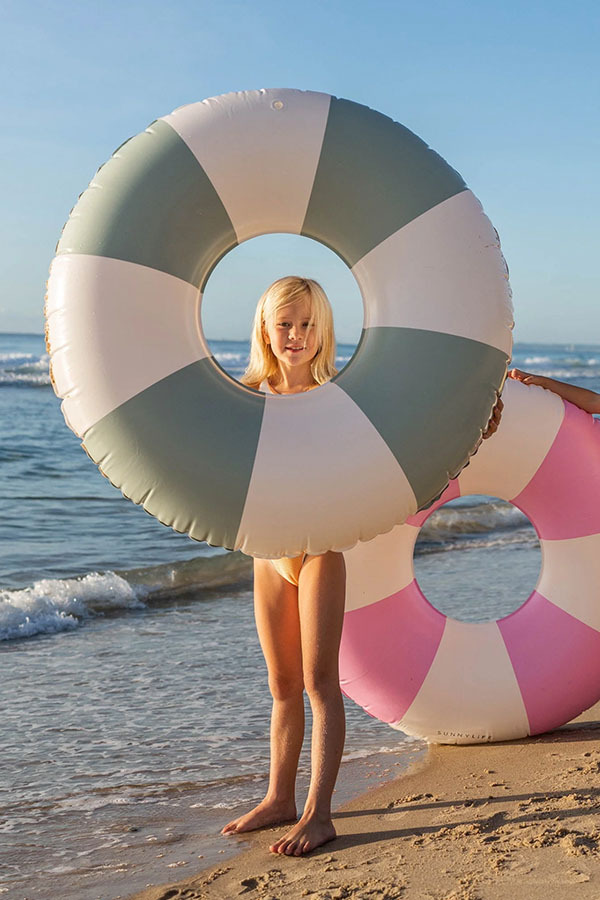 VACAY 橄欖綠條紋泳圈兼具時尚、休閒、隨和,非常適合漂浮在泳池中和在海邊度過夏日陽光
