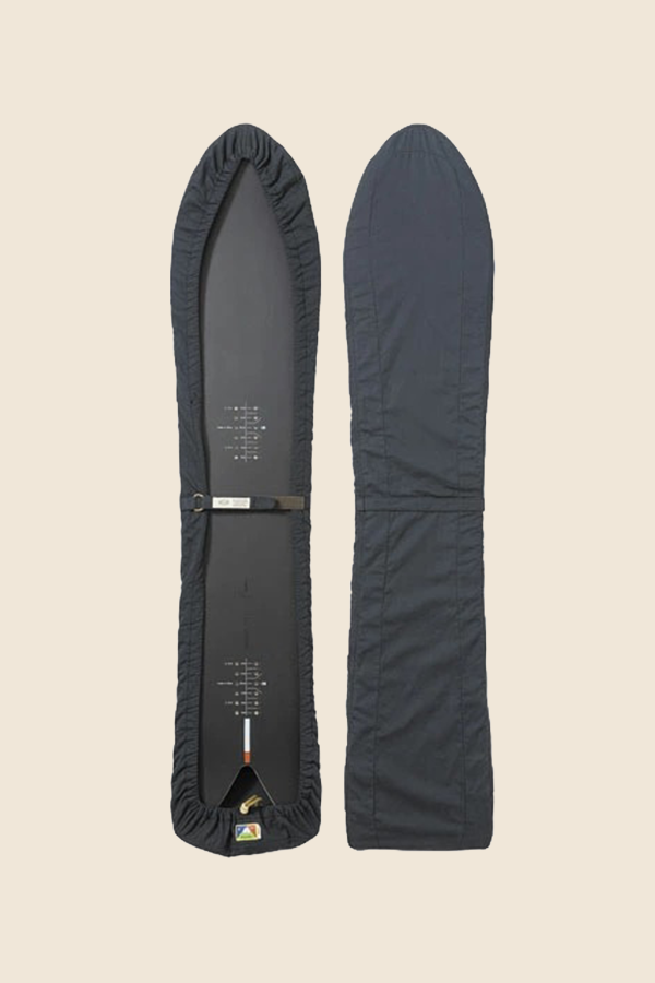 薄款帆布材質柔軟包覆雪板底部,接觸邊緣的部分加上棉質絨布加強耐用度。透過拉動棉繩,只需數秒即可將整個雪板包覆。